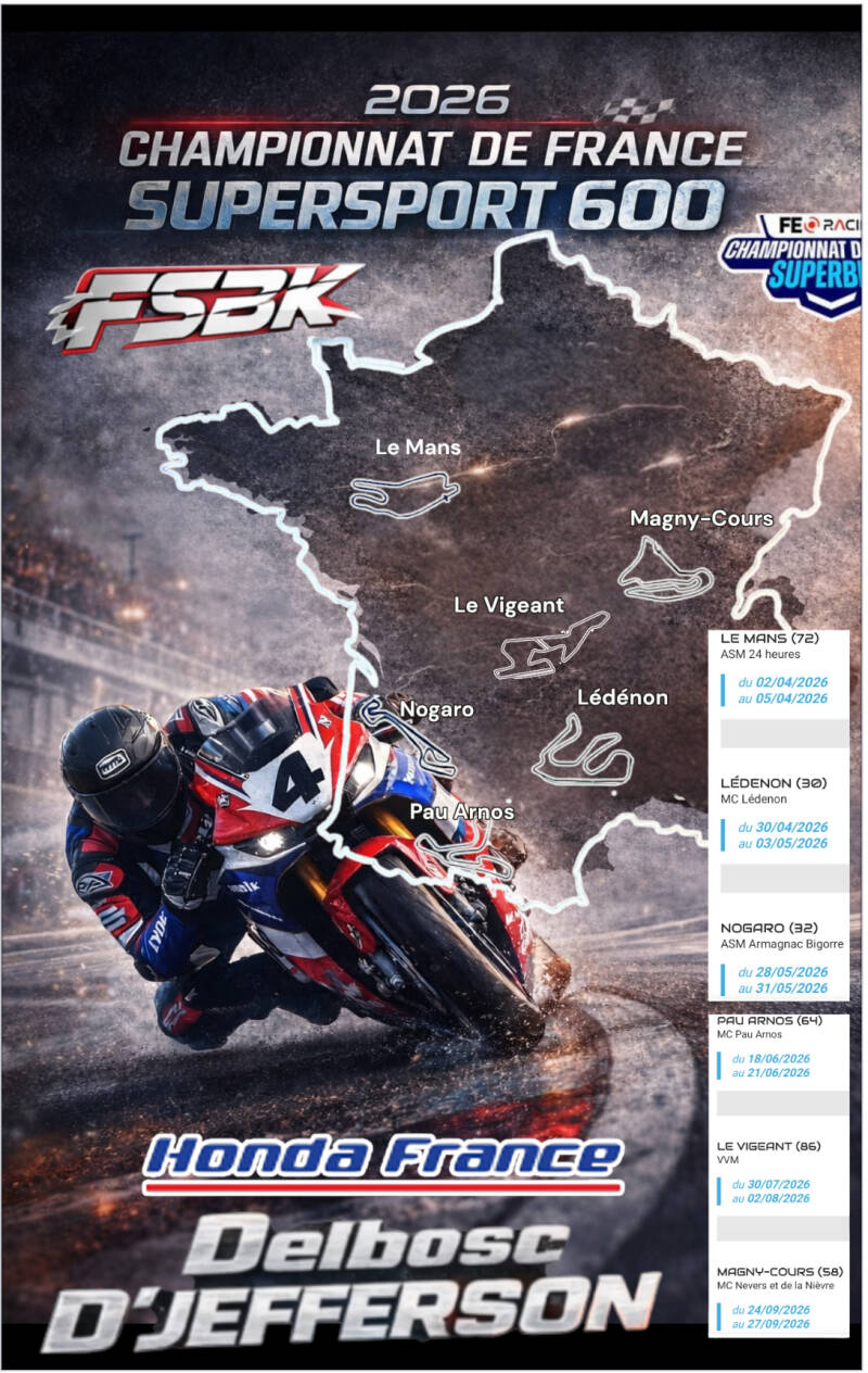 Je suis engagé au Championnat de France (FSBK) avec le soutien de HONDA FRANCE.